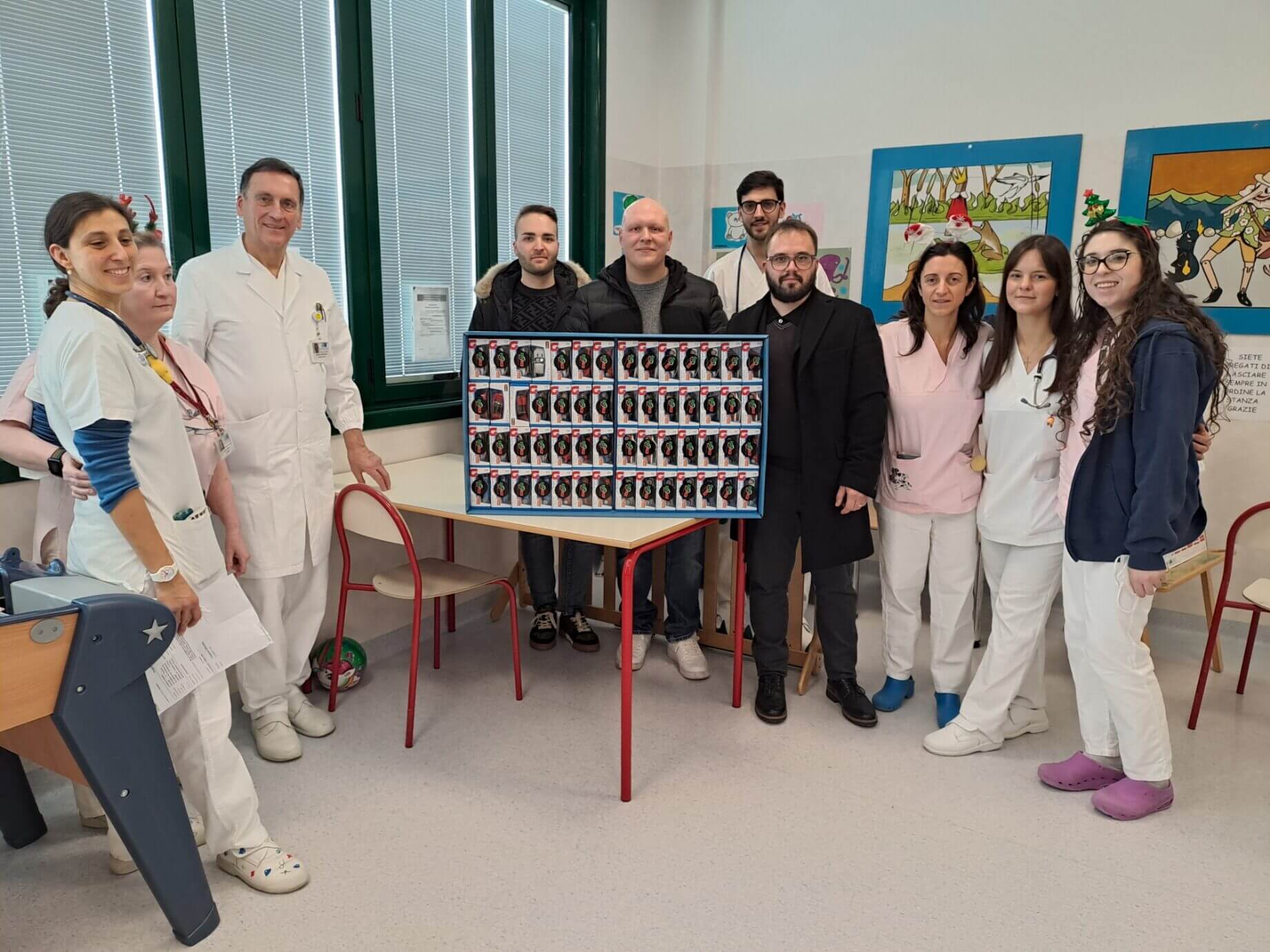 Al secondo piano sono arrivati i motori. O meglio, le riproduzioni. Alcuni imprenditori locali di una concessionaria hanno consegnato oltre 200 modellini di auto. Sono pezzi attuali, pensati per il gioco. Serviranno a distrarre i bambini, a regalare un attimo di normalità. Un piccolo tesoro da portare a casa o da collezionare per alleggerire l’ansia della degenza.