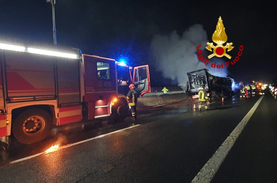 Incendio di un mezzo pesante blocca l’A1 in direzione nord