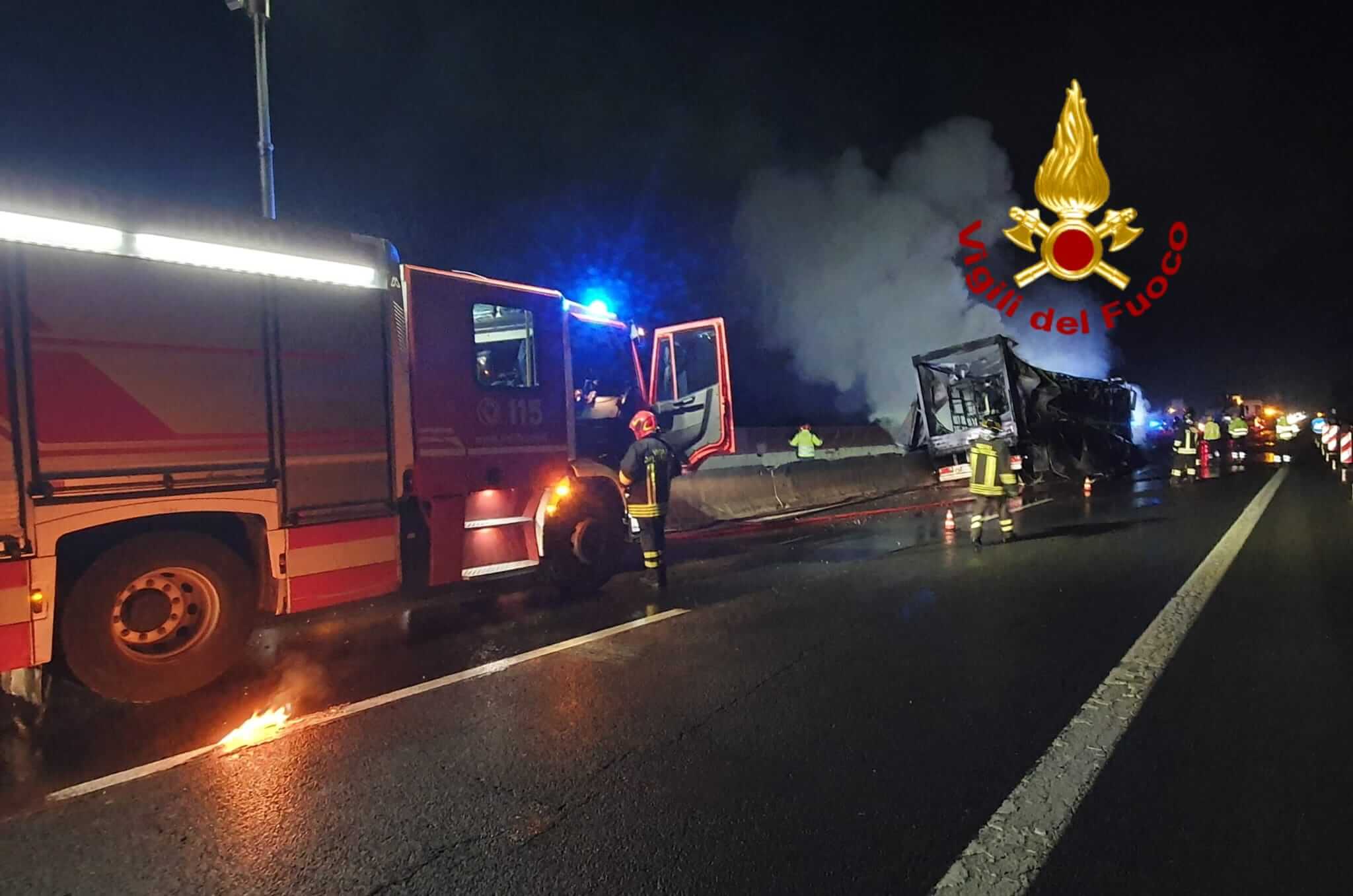 Notte di disagi per la circolazione per l'intervento dei vigili del fuoco sul tratto autostradale: paura ma nessun ferito