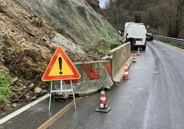 Un altro smottamento si è verificato nel comune di Borgo, in località Madonna dei tre fiumi. Anche in questo caso stabilito il senso unico alternato.