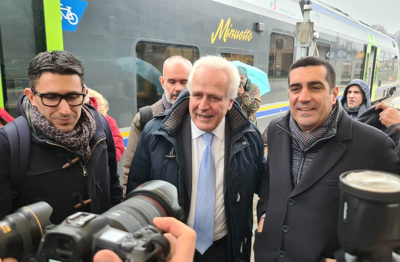 Il convoglio inaugurale ha lasciato Firenze Santa Maria Novella alle 9:40. A bordo i pendolari, ma anche le istituzioni. C’erano il presidente della Toscana Eugenio Giani e l’assessore ai trasporti Filippo Boni, affiancati dai vertici di Rfi e Trenitalia. A Borgo San Lorenzo sono saliti i sindaci del Mugello. L’arrivo a Marradi è stato una festa: ciambelle, vin brulè e l’accoglienza degli Alpini. Qui è avvenuto l’incontro simbolico. Giani è sceso e ha abbracciato Michele De Pascale, presidente dell’Emilia Romagna. Le due regioni si sono ritrovate.