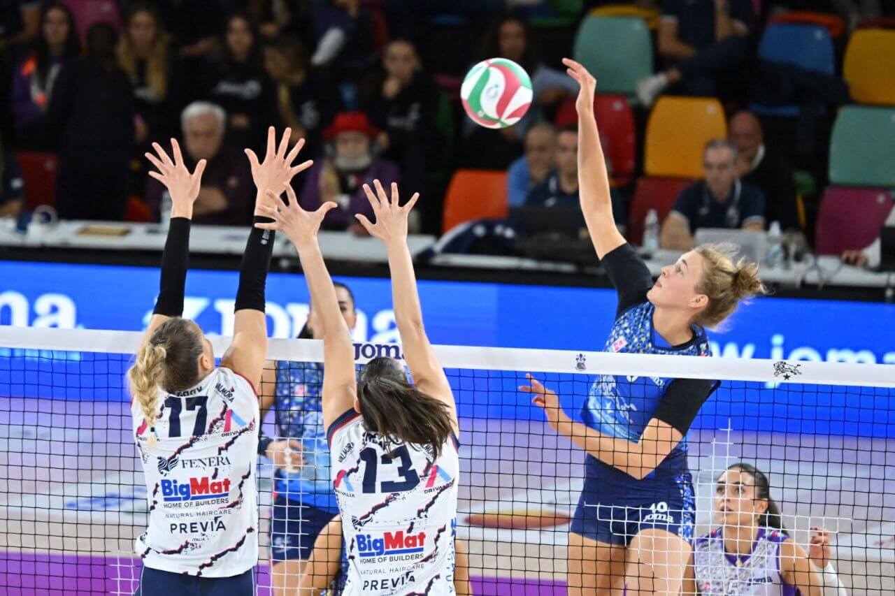 “Non è stata una partita facile e sapevamo che non lo sarebbe stata – dice coach Federico Chiavegatti – nei primi due set abbiamo avuto qualche difficoltà dovuta alla pressione, alla prima di campionato può succedere anche se si spera sempre che non succeda. Ci abbiamo messo un po’ a carburare con la battuta, ma dal terzo set abbiamo cominciato a metterle sotto pressione, e il loro gioco è diventato un po’ più semplice da contrastare. Nel quarto, dopo un inizio punto a punto, loro hanno espresso il massimo delle proprie qualità e in quel momento è stato difficile contrastarle, ma ci può stare perché è una squadra con tante giocatrici importanti. Nel terzo set abbiamo avuto una buona reazione, in difesa siamo andati su tutti i palloni e da lì vogliamo ripartire perché la squadra che io vedo ogni giorno in allenamento è quella del terzo set”.