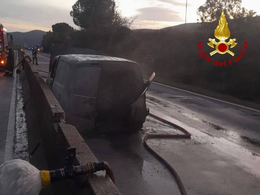 GROSSETO – Attimi di tensione nel pomeriggio di oggi lungo la statale Aurelia. Intorno alle 15,46, all’altezza dello svincolo per Alberese, un furgone ha preso fuoco. Il veicolo viaggiava in corsia sud quando, per cause ancora da accertare, le fiamme lo hanno avvolto durante la marcia.