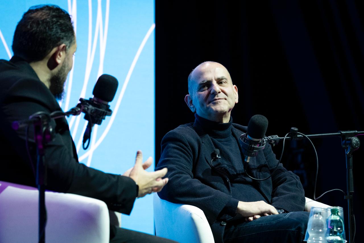 Gigi De Palo, Direttore Generale della Fondazione Angelini, e Alberto Pellai durante l’incontro del ciclo “Adolescence” promosso da Fondazione Oltre (Crediti: Cristian Gennari)