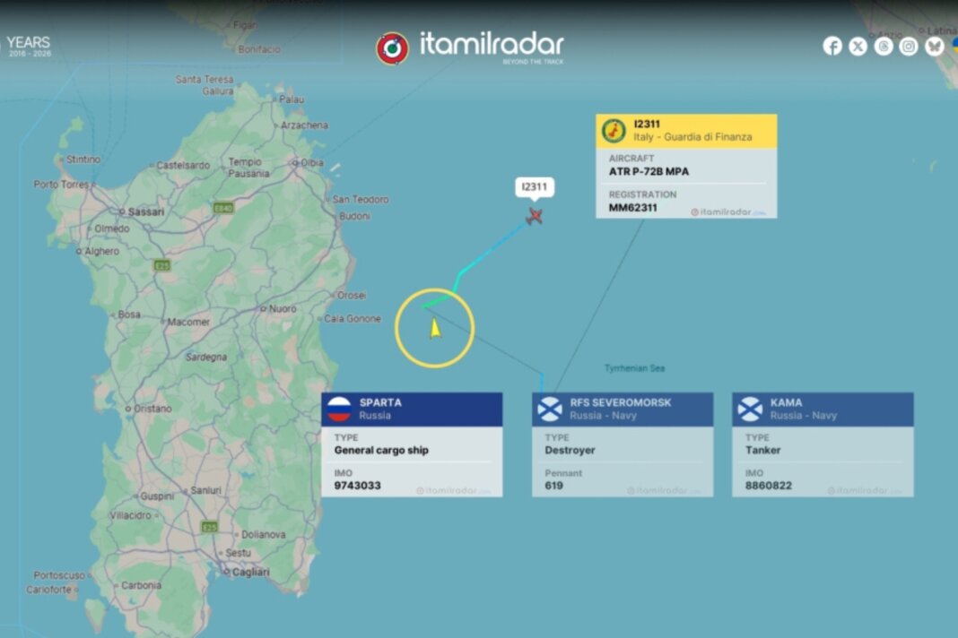 Non è la prima volta che la Sardegna finisce al centro dell’attenzione per attività marittime russe. A gennaio 2026, la nave spia Yantar è stata individuata a sud dell’Isola, con ipotesi di operazioni di monitoraggio sottomarino. Nel febbraio 2025, il sottomarino Krasnodar e il rimorchiatore Churov sono transitati nel canale di Sardegna sotto stretto monitoraggio della Guardia di Finanza e dell’Aeronautica Militare. Sempre a febbraio 2025, una flottiglia di otto navi russe partite dalla Siria ha attraversato il canale di Sardegna, incluse fregate, navi da sbarco, portacontainer e petroliere.