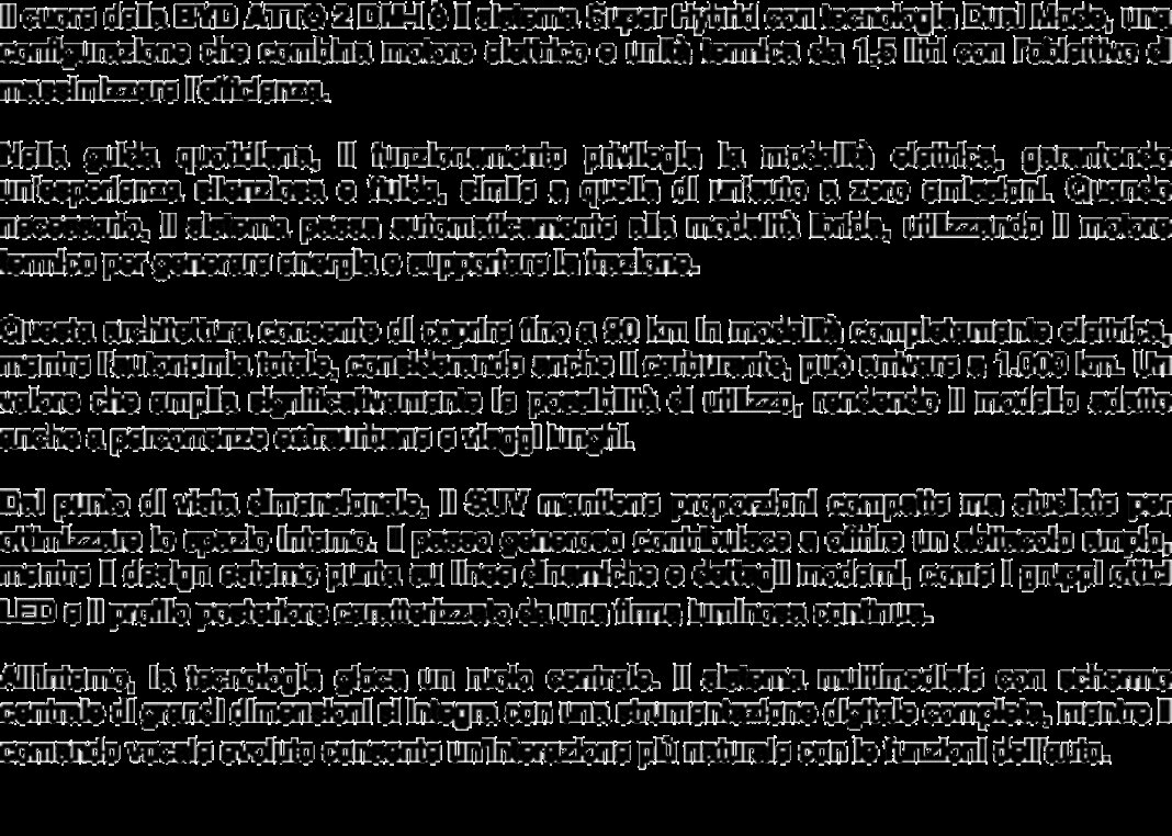 Il cuore della BYD ATTO 2 DM-i è il sistema Super Hybrid con tecnologia Dual Mode, una configurazione che combina motore elettrico e unità termica da 1,5 litri con l’obiettivo di massimizzare l’efficienza.