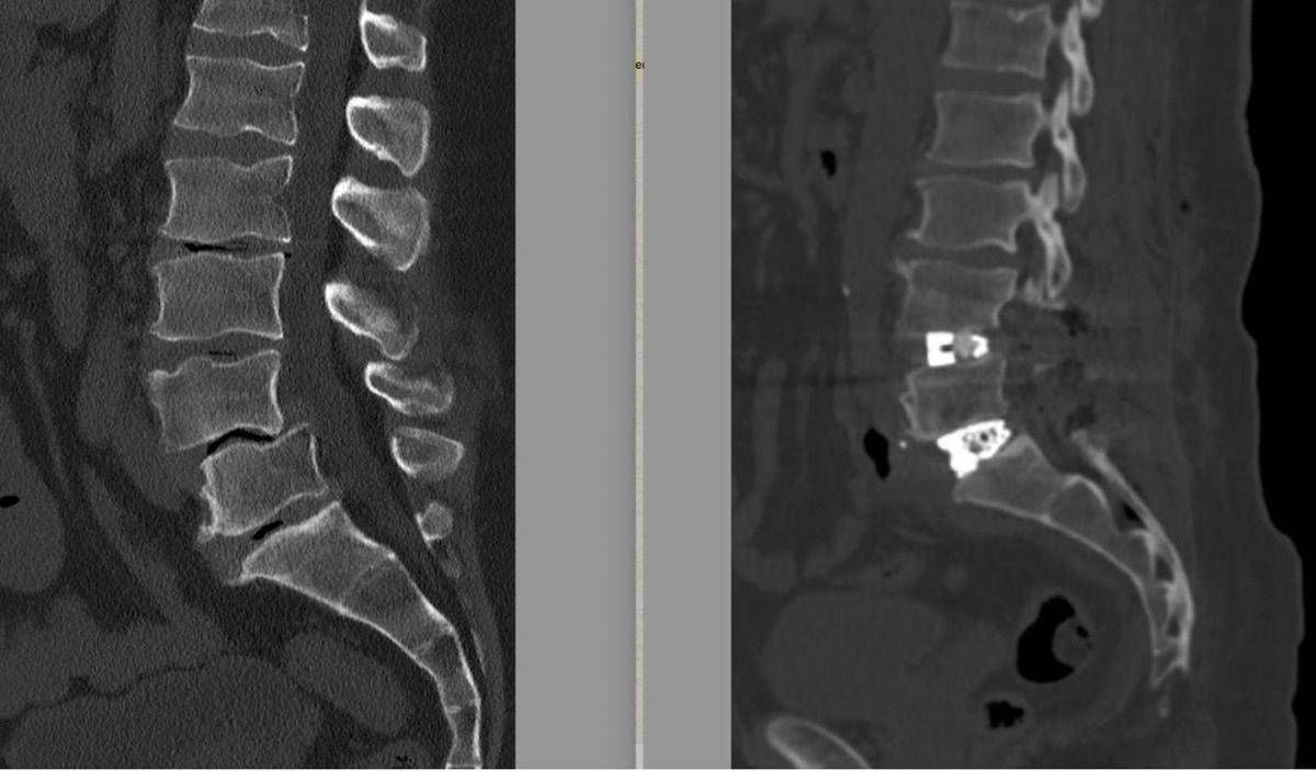 La diagnosi era di spondilolistesi tra la quarta e la quinta vertebra lombare (L4-L5), una patologia degenerativa cronica caratterizzata dallo scivolamento progressivo di una vertebra sull’altra, associata a una discopatia del disco intervertebrale L5-S1. Nel tempo – sottolineano gli esperti – questa deformità determinava una compressione significativa delle radici nervose, provocando una sciatalgia bilaterale invalidante, con dolore irradiato agli arti inferiori che peggiorava in posizione eretta e durante le attività quotidiane e lavorative, compromettendo in modo rilevante la qualità di vita.