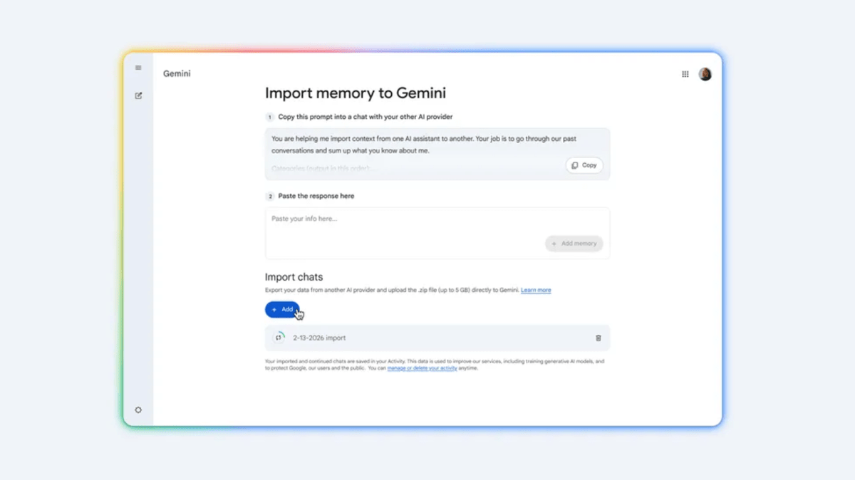 Uno dei maggiori ostacoli nel passaggio da un’intelligenza artificiale all’altra è sempre stata la necessità di ricominciare da zero, perdendo mesi di “addestramento” personale. Per ovviare a questo problema, sono stati introdotti strumenti di transizione che consentono di importare ricordi e cronologie da applicazioni concorrenti. Attraverso il caricamento di un semplice file ZIP o l’utilizzo di un comando specifico per generare riepiloghi sintetici, è possibile trasferire in Gemini l’intero bagaglio di interessi e relazioni già costruito altrove. Questa funzione permette all’utente di non dover rispiegare chi sono i propri familiari o quali siano i propri obiettivi professionali, garantendo una continuità operativa immediata.