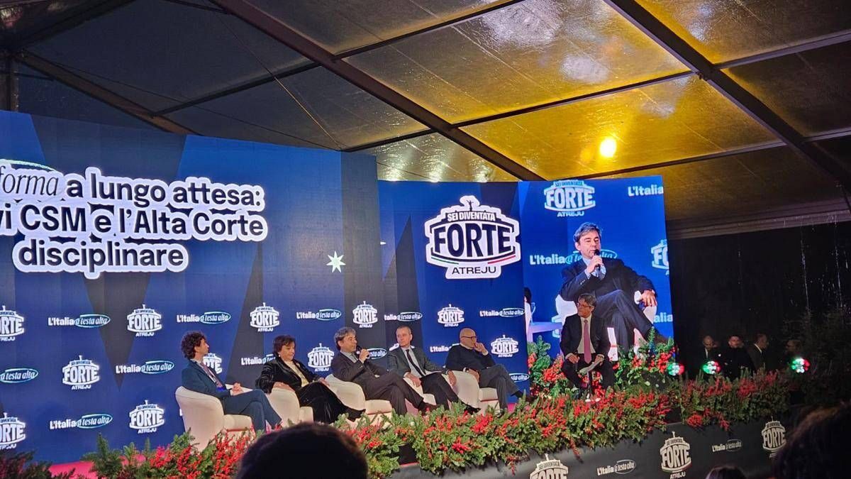 (Adnkronos) – Dibattito dai toni a tratti accesi oggi, venerdì 12 dicembre, ad ‘Atreju’ alla tavola rotonda sulla giustizia dal titolo ‘Una riforma a lungo attesa: i nuovi Csm e l’Alta Corte disciplinare’. Qualche fischio e brusii dalla platea alle parole del presidente dell’Anm Cesare Parodi e di Alfonso Colucci, deputato M5S, applausi per esponenti della maggioranza, soprattutto, sul caso Palamara.