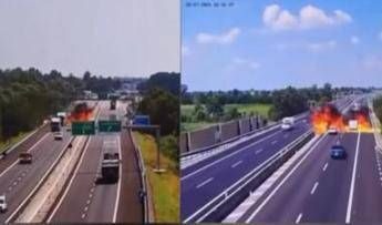 (Adnkronos) – Perde quota, si schianta al suolo e prende immediatamente fuoco in mezzo ai veicoli in transito. Sui social del Tg1 le immagini dell’ultraleggero che martedì mattina è precipitato su una delle due carreggiate del raccordo autostradale Corda Molle in provincia di Brescia. Le immagini mostrano proprio il momento in cui il velivolo cade in picchiata tra le auto che stanno transitando in quel punto in quel momento e la colonna di fumo nero che si alza dall’ultraleggero in fiamme. . —cronacawebinfo@adnkronos.com (Web Info)
