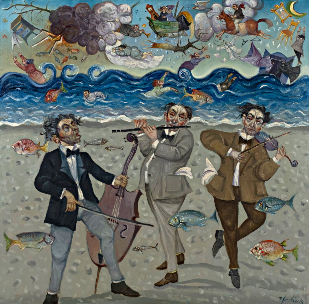 Un percorso, dal titolo Nel silenzio. il colore va in scena, che non è solo una cronaca per immagini, ma una vera e propria messa in scena teatrale. Il visitatore viene accolto da un silenzio visivo, una soglia simbolica dettata dall’uso del nero, per poi essere investito dal colore che introduce i contenuti. È un invito all’osservazione lenta, un respiro profondo prima di tuffarsi nel piccolo mondo di Fontirossi: un universo popolato da suonatori stralunati, venditori ambulanti, condomini affollati e quel mare sognato ma mai navigato, che per il pittore rimaneva sempre uno sfondo metafisico, un orizzonte riservato ai desideri dell’infanzia.