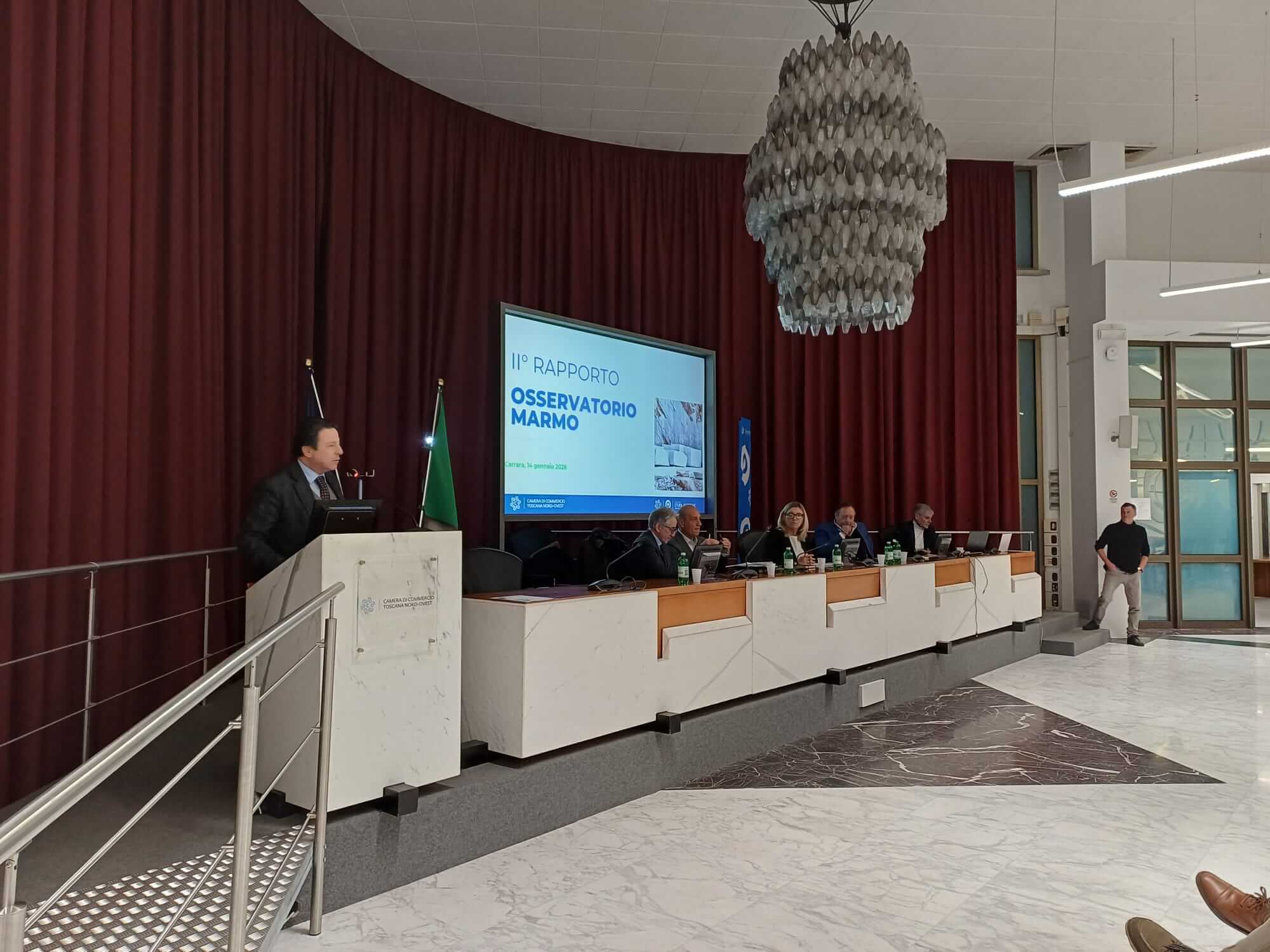 CARRARA – Oltre 600 milioni di euro di materiale esportato con i lavorati che toccano quota 418 milioni certificando il sorpasso del distretto apuano su quello veneto. A tutto ciò si aggiungano la crescita certificata di investimenti e occupazione giovanile mentre l’estrazione di blocchi tocca i minimi dagli anni ‘70. Sono questi alcuni dei numeri più importanti registrati nel secondo report dell’Osservatorio del Marmo che è stato presentato mercoledì 14 gennaio alla sede di Carrara della Camera di Commercio della Toscana Nord-Ovest. Lo studio, frutto della sinergia tra il Comune di Carrara, la Camera di Commercio e il Consorzio zona industriale apuana e Agenzia delle Dogane e dei Monopoli, con il supporto dell’Istituto studi e ricerche, delinea una filiera che ha saputo reagire alle sfide globali con una strategia basata sulla qualità e su una solida struttura finanziaria, capace di generare valore anche in contesti macroeconomici incerti e mercati sempre più competitivi.