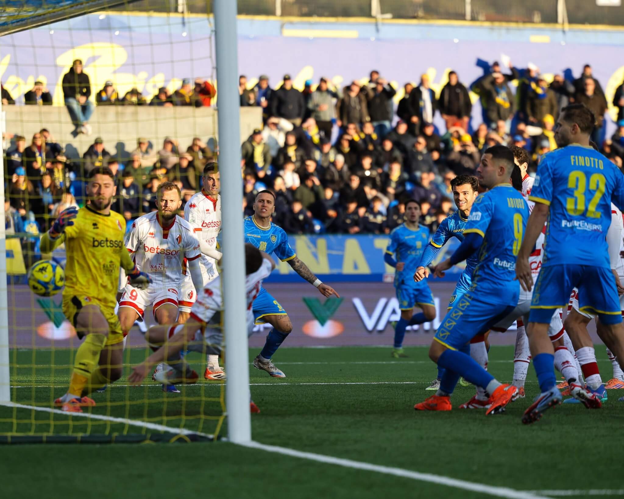 Mischia le carte in avvio di ripresa il Bari: fuori Castrovilli, dentro Bellomo. Subito pericolosa la squadra di Vivarini al 47’ con una ripartenza fulminante condotta da Gytkjaer, che davanti a Bleve si fa ipnotizzare la conclusione dal portiere azzurro, che si allunga e para con i piedi, salvando il risultato. Passa solo un minuto ed è la Carrarese a portarsi in vantaggio: sugli sviluppi di un corner dalla destra, Calabrese è lucido a gestire il pallone dentro l’area di rigore, servendo al centro Abiuso che con un tap-in da vero rapace dell’area di rigore porta in vantaggio la Carrarese.