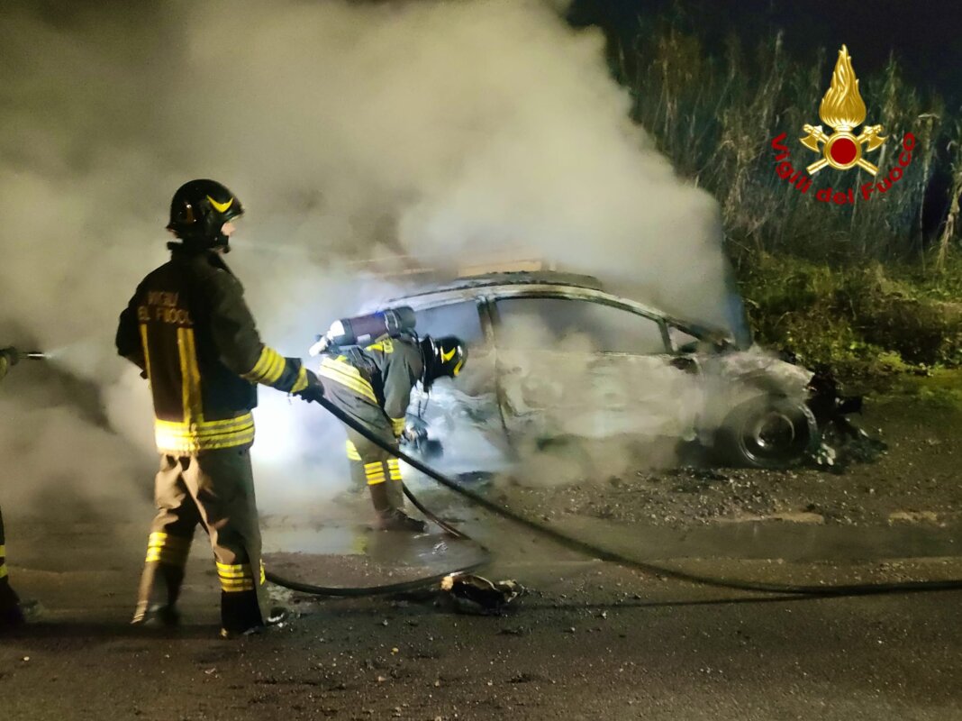 Un’auto parcheggiata è stata improvvisamente avvolta dalle fiamme, che in pochi minuti l’hanno completamente distrutta, sprigionando una densa colonna di fumo nero visibile anche dagli automobilisti in transito sulla superstrada.