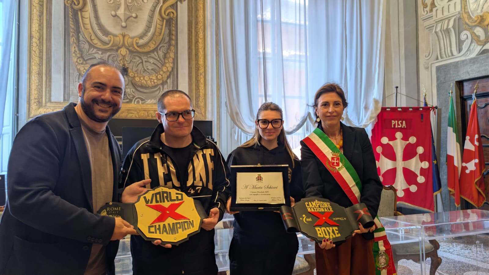 PISA – Il Comune di Pisa rende omaggio a Marta Schiavi, giovane atleta pisana, classe 2006, recentemente laureatasi campionessa del mondo di boxe femminile nella categoria 55 chili della federazione Xfx (Xtreme Fighter Champion).