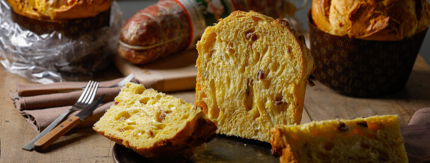 Si tratta di una reinterpretazione audace del classico dolce natalizio. La struttura è quella soffice e ariosa dei grandi lievitati, ma il cuore è salato. Al posto degli ingredienti dolci, nell’impasto finiscono piccoli cubetti di Finocchiona IGP. Il salume simbolo della norcineria toscana, con il suo aroma inconfondibile di finocchio selvatico, diventa l’attore principale. Dona profumo e sapidità senza appesantire la nuvola di pasta madre.