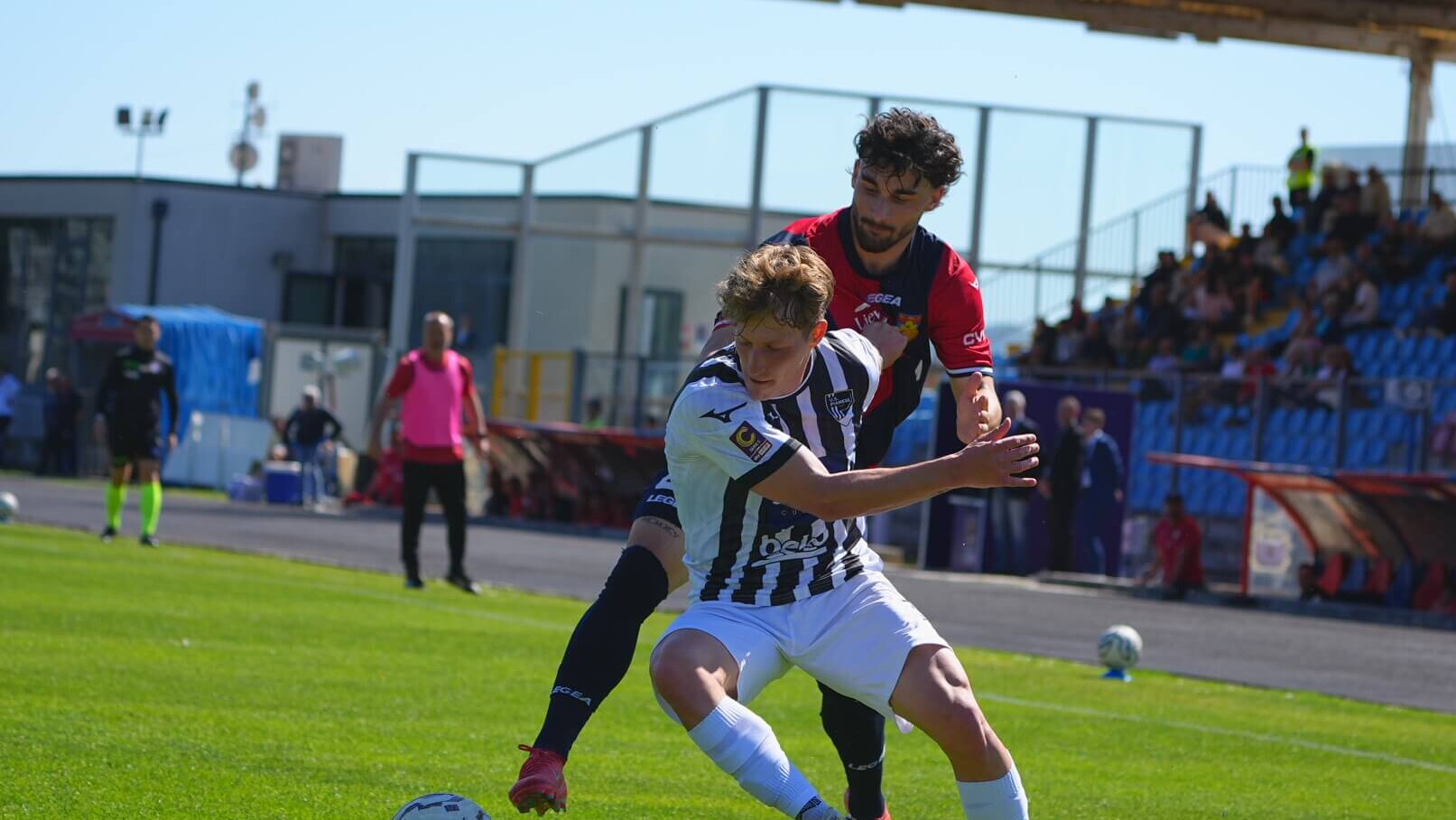 L’avvio di gara vede i padroni di casa tentare subito di imporre il proprio ritmo. Già al 2′, una pregevole combinazione porta Costa alla conclusione, ma l’estremo difensore toscano Filippis si oppone con un grande intervento. Pur lasciando il pallino del gioco agli avversari, la retroguardia bianconera si difende con ordine, per poi colpire alla prima vera occasione. Al 18′, sugli sviluppi di uno schema da calcio d’angolo, la gara si sblocca: il cross di Proietto trova la sponda aerea di Gorelli, che apparecchia per Ianesi, il più lesto ad avventarsi sulla sfera vagante e a insaccare la sua prima marcatura in maglia bianconera.