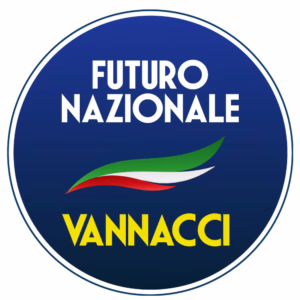 Il logo è un cerchio su sfondo blu con la scritta bianca ‘Futuro nazionale’, e sotto quella gialla ‘Vannacci’, tutto in stampatello maiuscolo. Con disegnata quella che sembra essere una fiamma tricolore stilizzata.